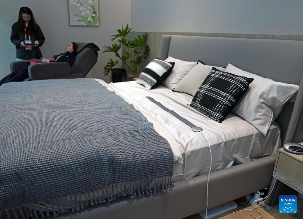 A smart bedroom system designed for the elderly is displayed at the Consumer Goods Exhibition area during the eighth China International Import Expo (CIIE) in east China's Shanghai, Nov. 7, 2025. At the eighth CIIE, a range of elder-friendly health products and services were showcased across multiple exhibition areas. The displays covered diverse fields such as rehabilitation aids, elder-friendly products, and sleep restoration, aiming to address the practical needs of the elderly population. (Xinhua/Liu Ying)