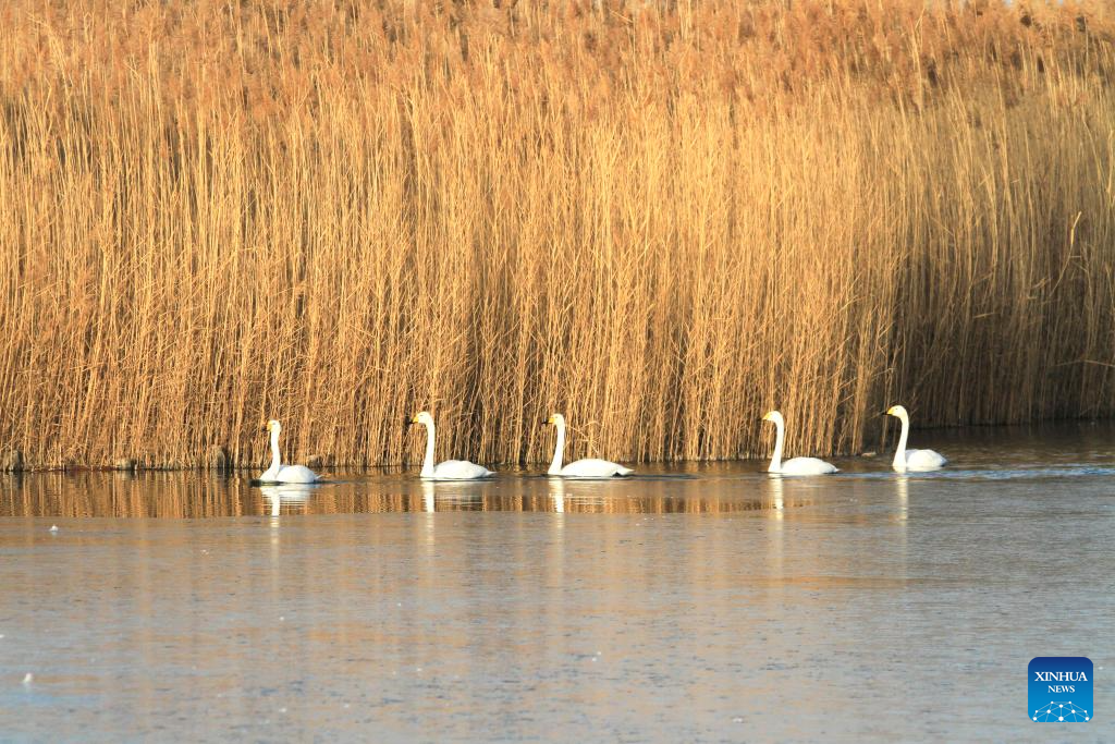 Swans are pictured at the Zhangye National Wetland Park in Zhangye, northwest China's Gansu Province, on Dec. 10, 2025. (Photo by Chen Li/Xinhua)