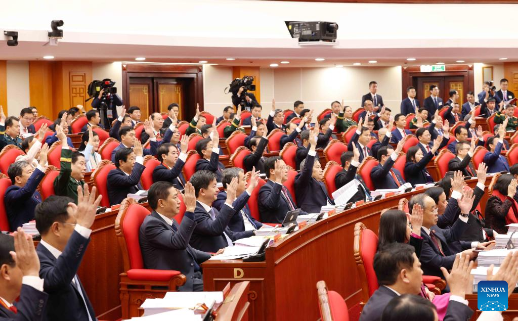 This photo taken on Jan. 23, 2026 shows a scene at the first plenary session of the 14th Communist Party of Vietnam (CPV) Central Committee in Hanoi, Vietnam. The first plenary session of the 14th CPV Central Committee voted for the CPV Political Bureau, Secretariat and Inspection Commission on Friday, according to a communique after the meeting. (VNA via Xinhua)