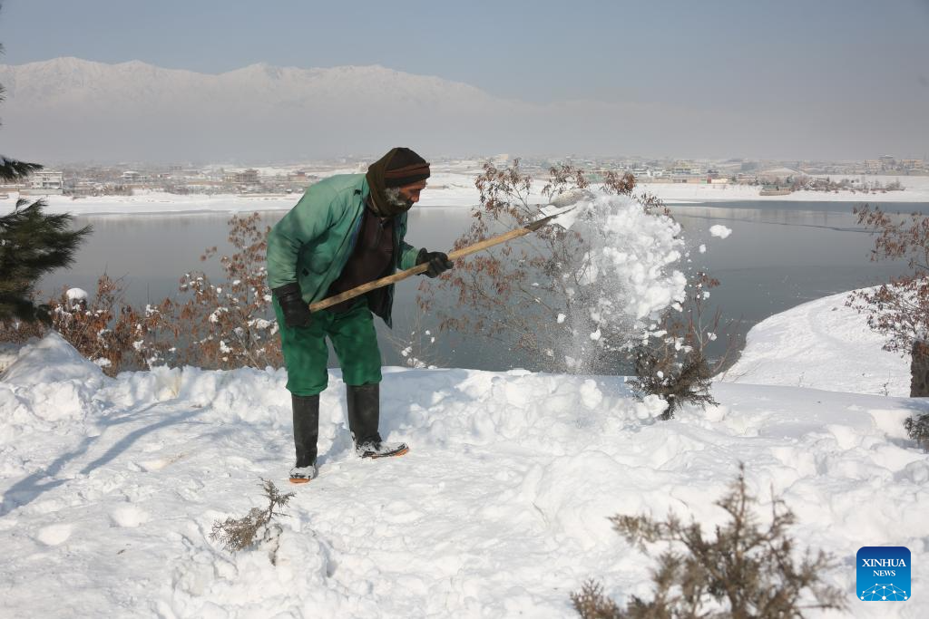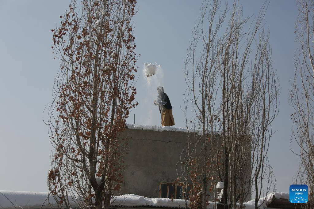 A resident cleans up snow in Paghman district, Kabul, Afghanistan, Jan. 25, 2026. At least 61 people were killed and 110 others injured due to heavy snowfall and rains across Afghanistan on Wednesday and Thursday, the National Disaster Management Authority (NDMA) said in a statement on Saturday.