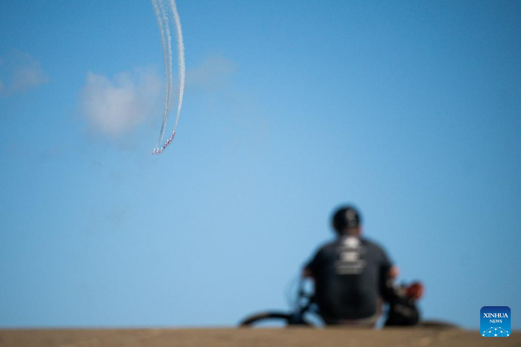 Members of the Patriots Jet Team perform during the annual Fleet Week air show in San Francisco, California, the United States, on Oct. 11, 2025. (Photo by Ziyu Julian Zhu/Xinhua)