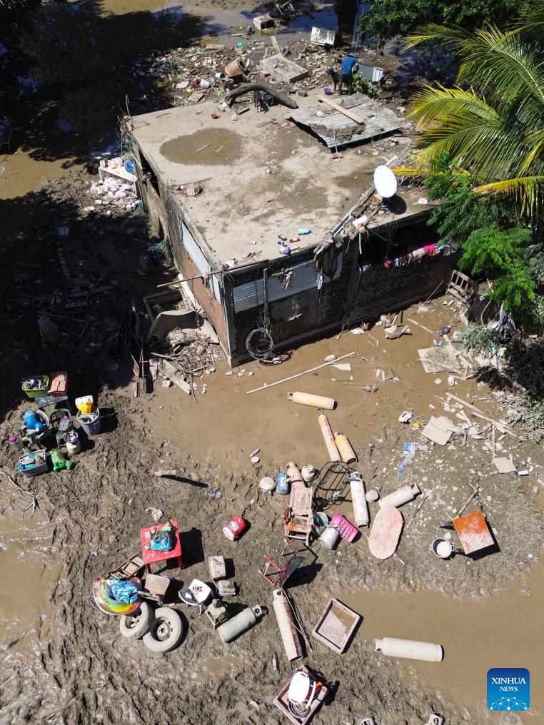 This drone photo taken on Oct. 12, 2025 shows people's belongings after the heavy rain in the city of Poza Rica, Veracruz state, Mexico. (Photo by Francisco Canedo/Xinhua)