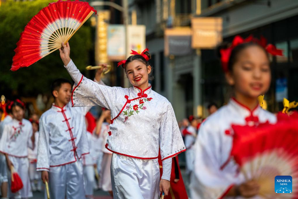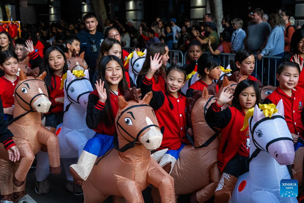 People attend a float parade celebrating the Chinese Lunar New Year in San Francisco, the United States, March 7, 2026. (Photo by Dong Xudong/Xinhua)