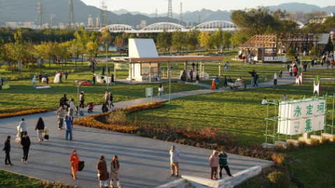 Beijing Stone Carving Art Museum, bathed in golden autumn hues, attracts tourists