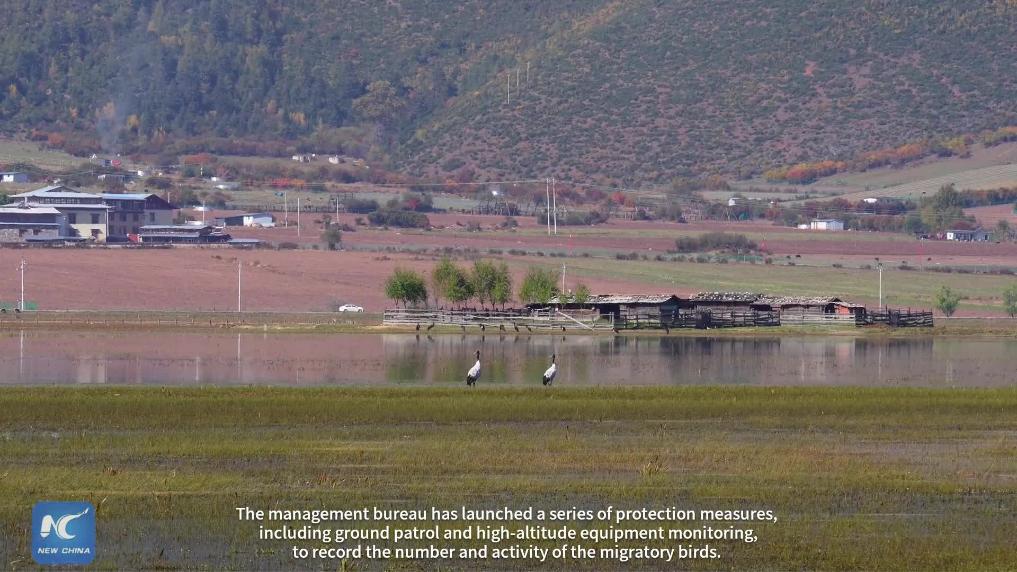 Black-necked cranes arrive at Napahai Lake Nature Reserve for wintering