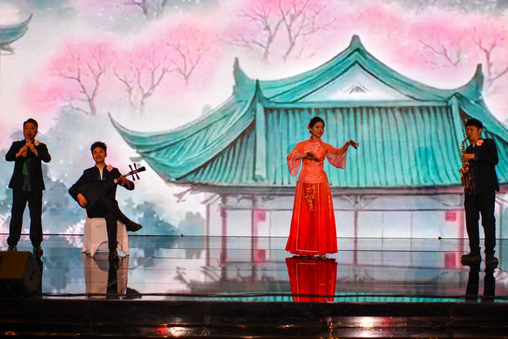 1月29日,演员在埃及开罗表演爵士南音《直入花园》。