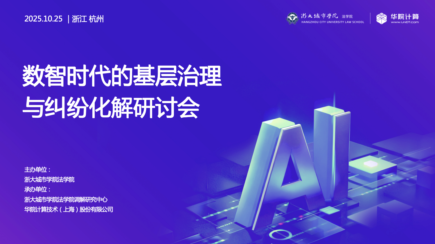 10月25日,“数智时代的基层治理与纠纷化解研讨会”在浙江杭州召开。本次会议由浙大城市学院法学院主办,浙大城市学院法学院调解研究中心与华院计算技术(上海)股份有限公司联合承办。