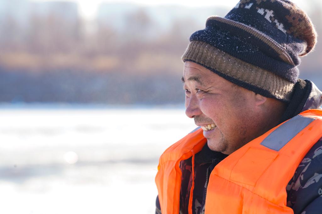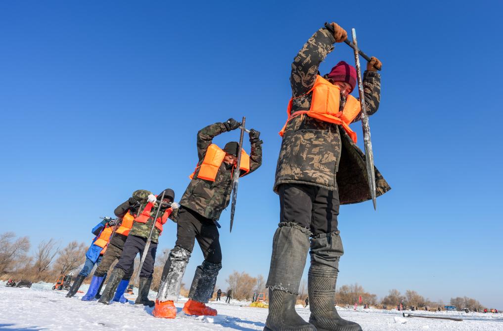 采冰人凿开冰面的第一声脆响