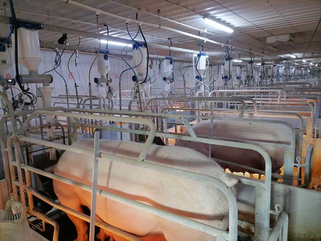 陕西石羊农业科技股份有限公司养殖场里,母猪正在食用饲料。(受访者供图)