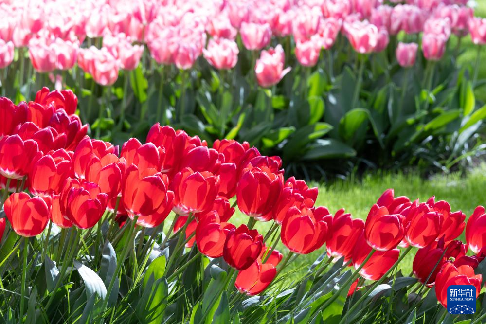 进入春季以来,哈萨克斯坦阿拉木图的郁金香陆续开放。各色的郁金香为城市增添了色彩,吸引市民前来观赏。