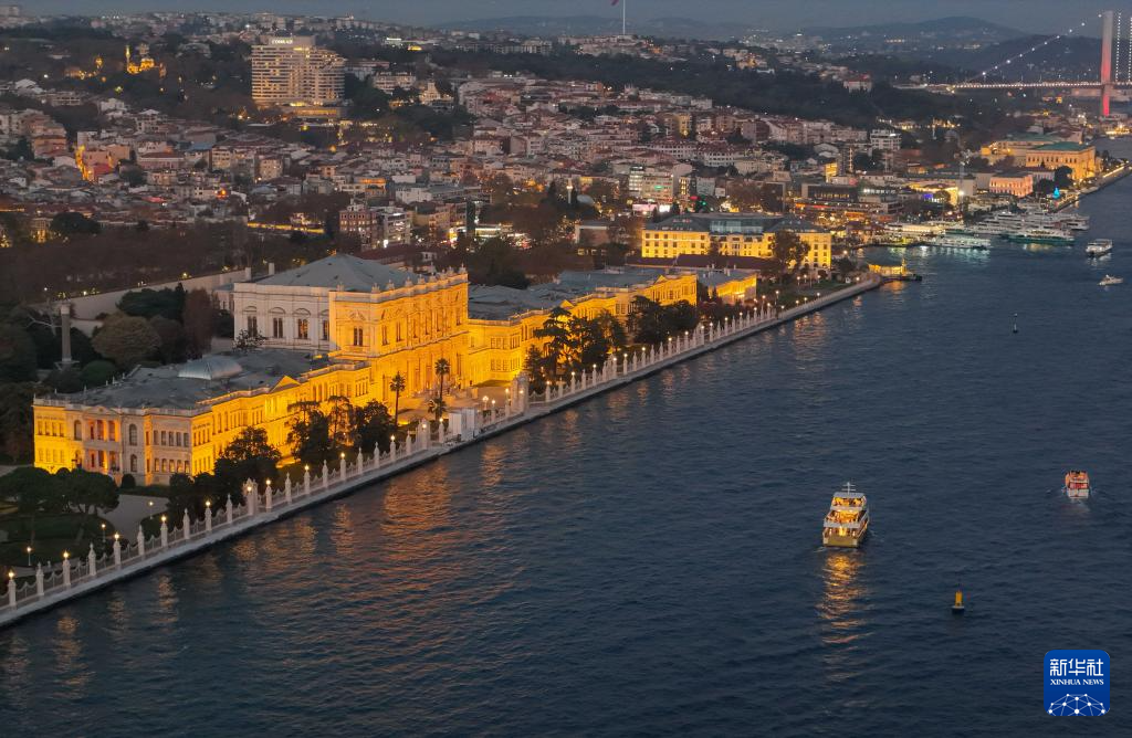夜幕降临,博斯普鲁斯海峡上船只穿梭,两岸灯火璀璨。