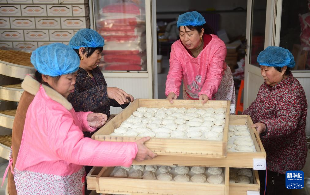 进入腊月,河北沧州部分乡村的面花作坊进入生产旺季,人们忙着制作各种形状的面花供应市场。面花是一种用模子塑形加工后蒸制的特色面食,有鱼、寿桃、十二生肖等造型,是当地春节期间的特色食品,经过揉面、搕花、晾花、蒸花等十多道工序制作而成。
