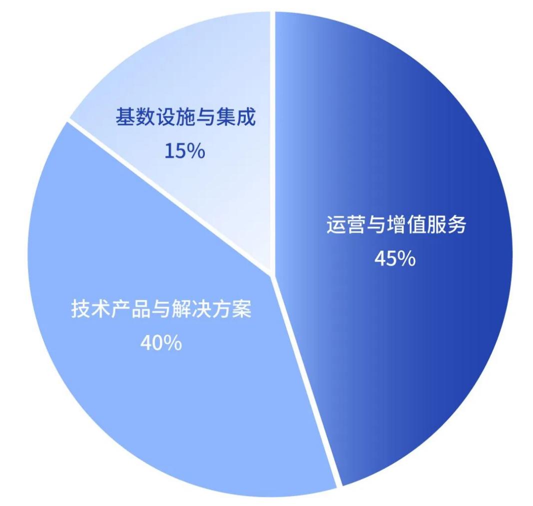 市场结构正经历深刻演变,从早期的基础设施建设“一家独大”,转向运营服务与增值应用占比快速提升的多元格局。在市场发展初期(2024—2025年),技术产品与解决方案是市场的绝对主体,占比超过70%。然而,随着首批数据空间完成基建并投入运营,运营与增值服务的占比将从2024年的15%快速增长至2028年的45%。这标志着产业价值中心正在转移,市场健康度与可持续性不断增强,为参与建设厂商开辟了通过持续运营参与价值分配的巨大想象空间。