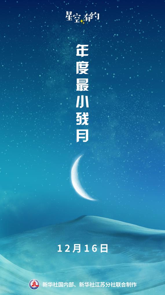 新华社南京12月14日电(记者王珏玢、邱冰清)12月16日将迎来本年度最小残月,届时,月球位于轨道远地点附近,人们看到的月亮像是一弯纤细的银钩。