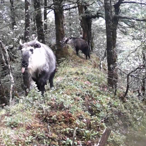 近日,四川省松潘县林业和草原局架设在岷江自然保护区的红外相机再次成功捕捉到国家一级保护野生动物羚牛的活动影像。