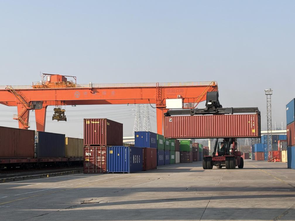 走进浙江义乌西铁路货场,龙门吊设备忙碌装卸,正面起重机在堆场搬运码放集装箱,经海关查验完成的货物在列车上整装待发——这里是串联起“世界超市”义乌与中亚、欧洲经贸往来的枢纽节点。