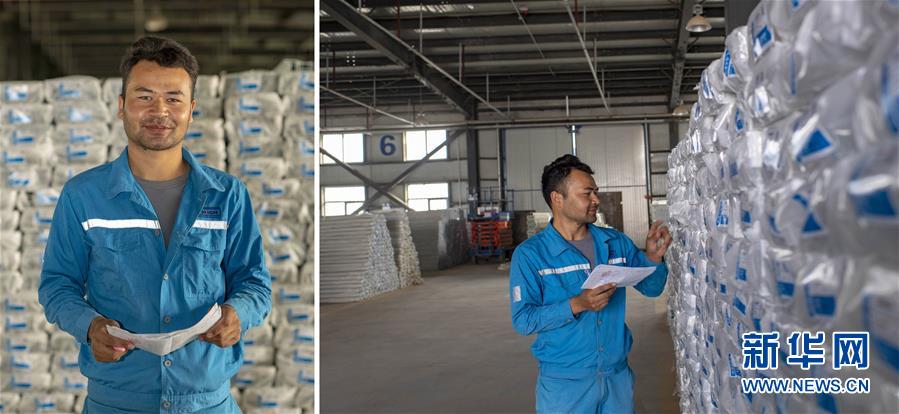 拼版照片:左圖為新疆和田地區(qū)皮山縣木吉鎮(zhèn)村民努爾艾合買提·艾合買提托合提;右圖為努爾艾合買提在一家由安徽援建的型材公司內(nèi)清點(diǎn)出庫產(chǎn)品(9月23日攝)。努爾艾合買提畢業(yè)于皮山縣職業(yè)技術(shù)學(xué)校,2018年8月來到公司上班,如今已成長(zhǎng)為一號(hào)車間發(fā)貨班長(zhǎng),月薪約4000元。新華社記者 胡虎虎 攝