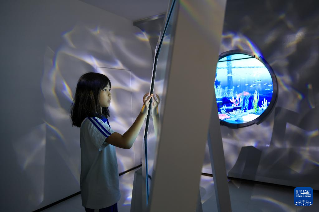 10月25日,小游客在深中通道西人工岛上的粤港澳大湾区跨海通道科普基地内体验互动游戏。