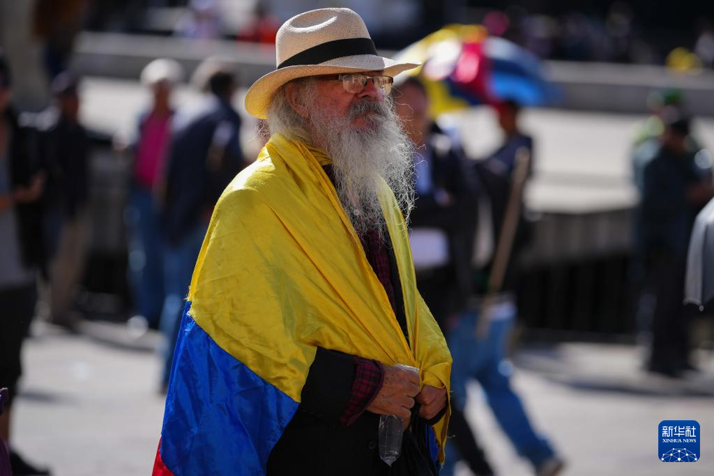 哥伦比亚群众24日聚集在首都波哥大的玻利瓦尔广场,声援总统佩特罗,反对美国干涉哥伦比亚内政。