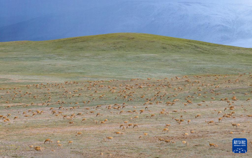 这是7月14日在羌塘国家级自然保护区拍摄的藏羚羊(无人机照片)。