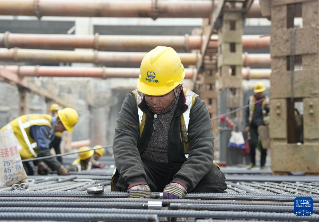寒冬腊月,在成都车站扩能改造工程地下40米深处的施工现场,中铁建工集团成都车站项目工程人员正抓紧施工。
