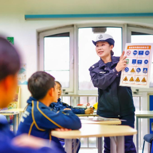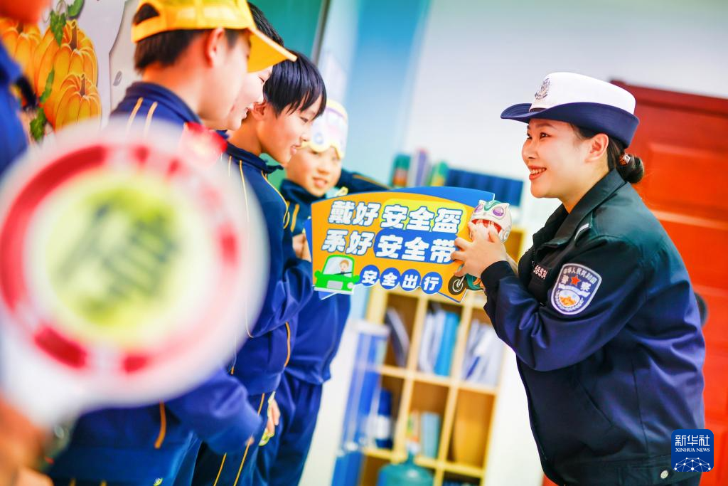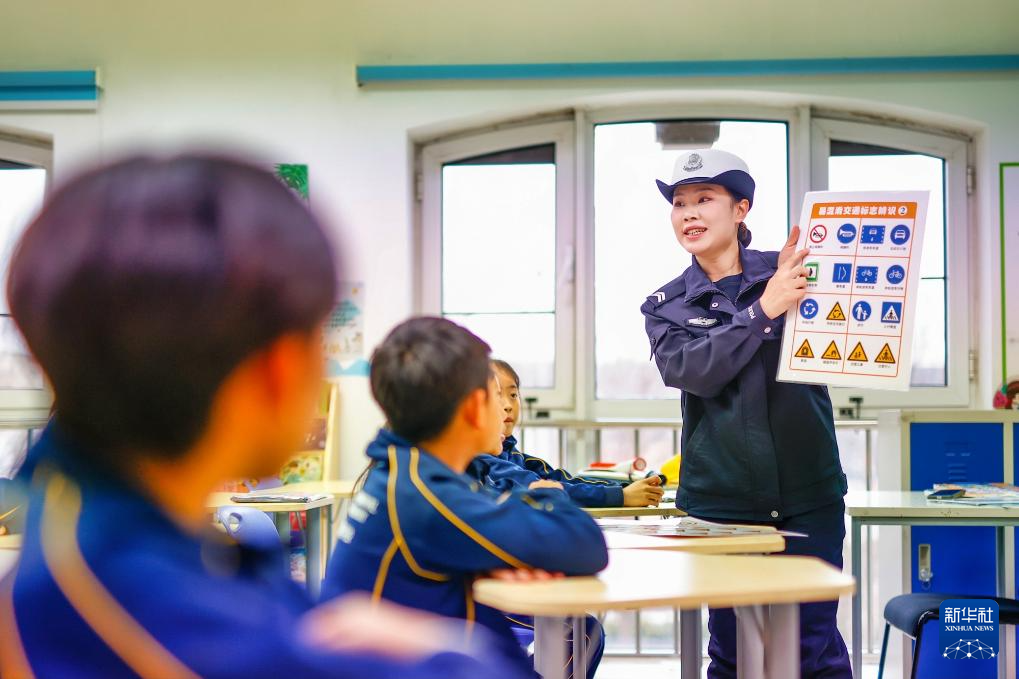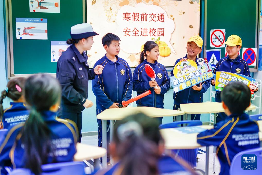 1月28日,天津市公安局滨海分局交通管理支队民警走进天津市海嘉学校,为学生讲授交通安全课,增强学生交通安全意识和自我防护能力。