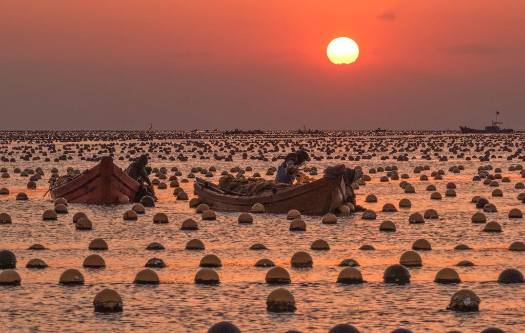 眼下,山东省荣成市小海带迎来收获季,养殖工人忙碌收获,投放春节市场。
