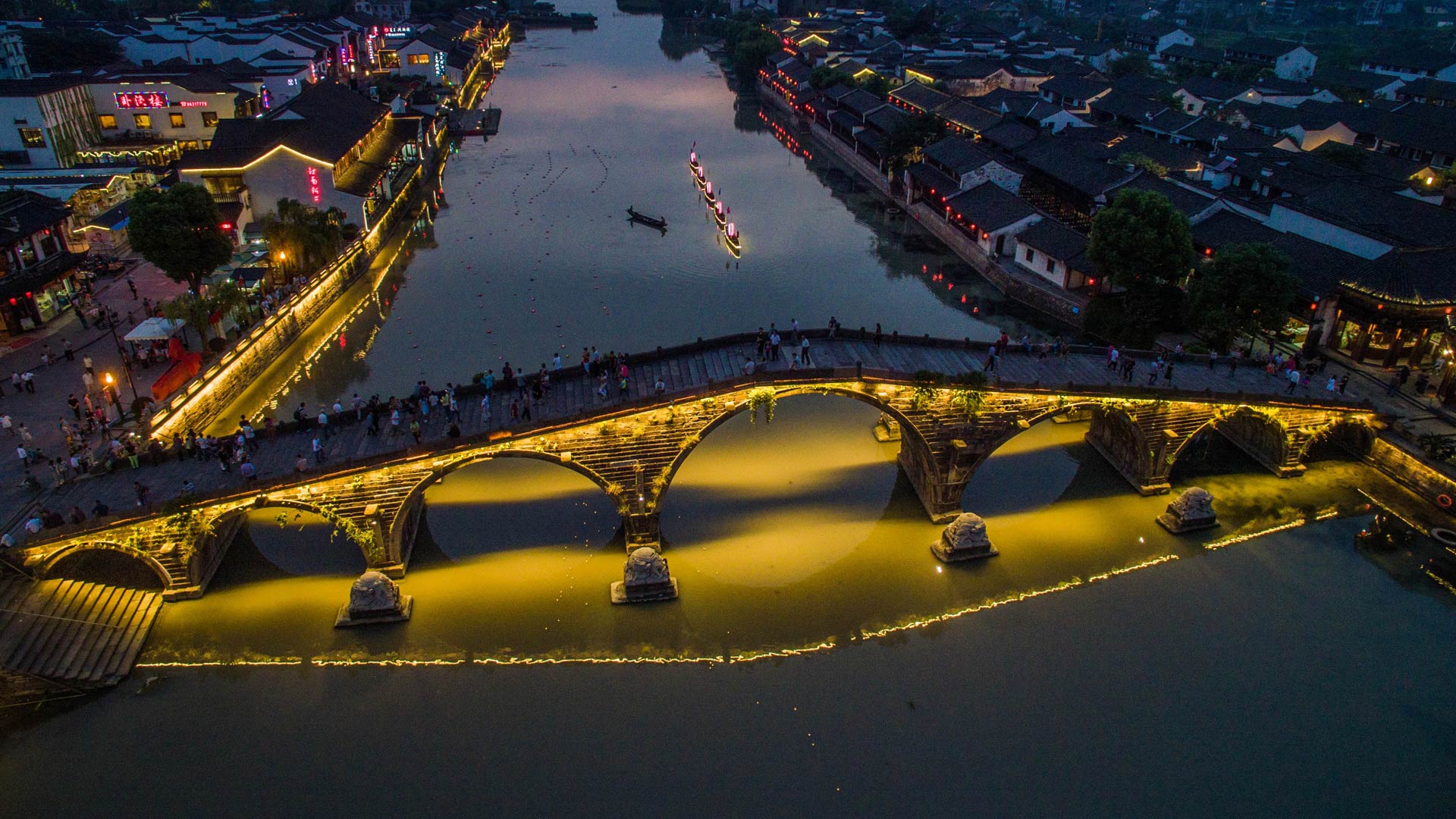 杭州塘棲古鎮(zhèn)廣濟橋(2015年9月24日攝)。新華社記者徐昱攝
