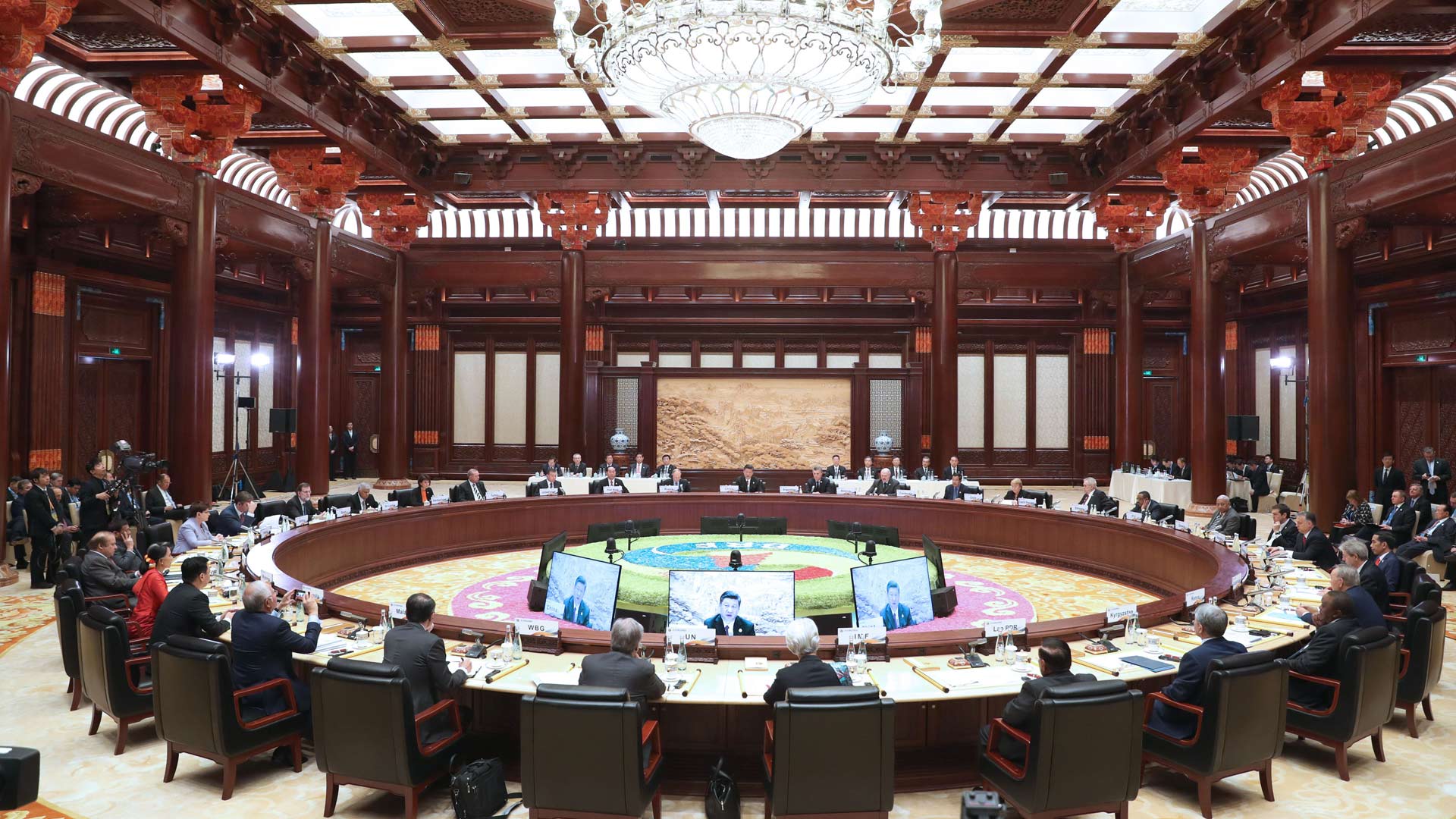 5月15日,“一帶一路”國際合作高峰論壇圓桌峰會(huì)在北京雁棲湖國際會(huì)議中心舉行,國家主席習(xí)近平主持會(huì)議并致開幕辭。新華社記者 鞠鵬 攝