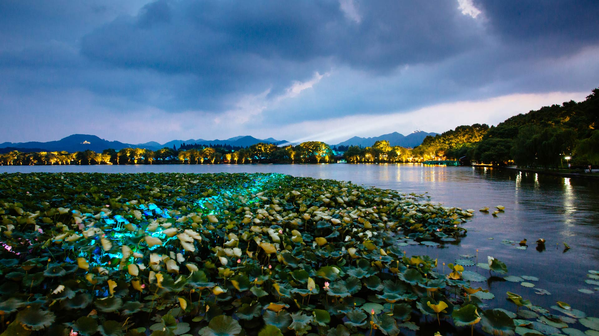 8月29日,游客在西湖集賢亭邊欣賞西湖夜色。傍晚的西湖邊,暮色與燈光交相輝映,市民和游客絡繹不絕。新華社記者 鞠煥宗 攝