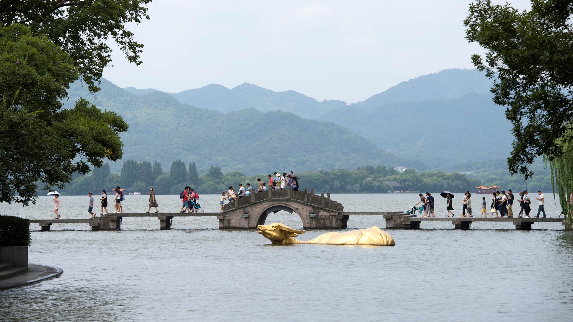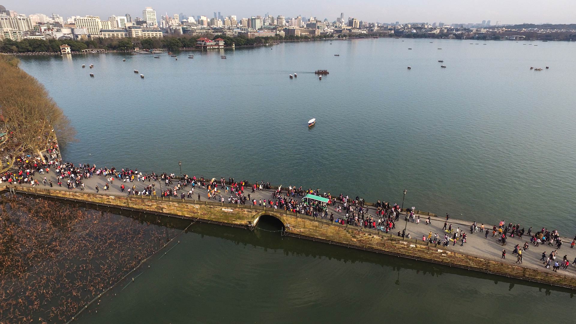 這是4月11日航拍的西湖景區(qū)蘇堤。2001年開始,杭州按“申遺”目標,對西湖進行了全方位的保護和整治。西湖南線各大公園打通,形成“十里環(huán)湖景觀帶”。龍井八景修復,慧因高麗寺重現(xiàn),南宋官窯博物館擴建,八卦田遺址得到保護,還有飛來峰石刻造像、雷峰塔遺址、龍井寺……(新華社記者 黃宗治攝 )