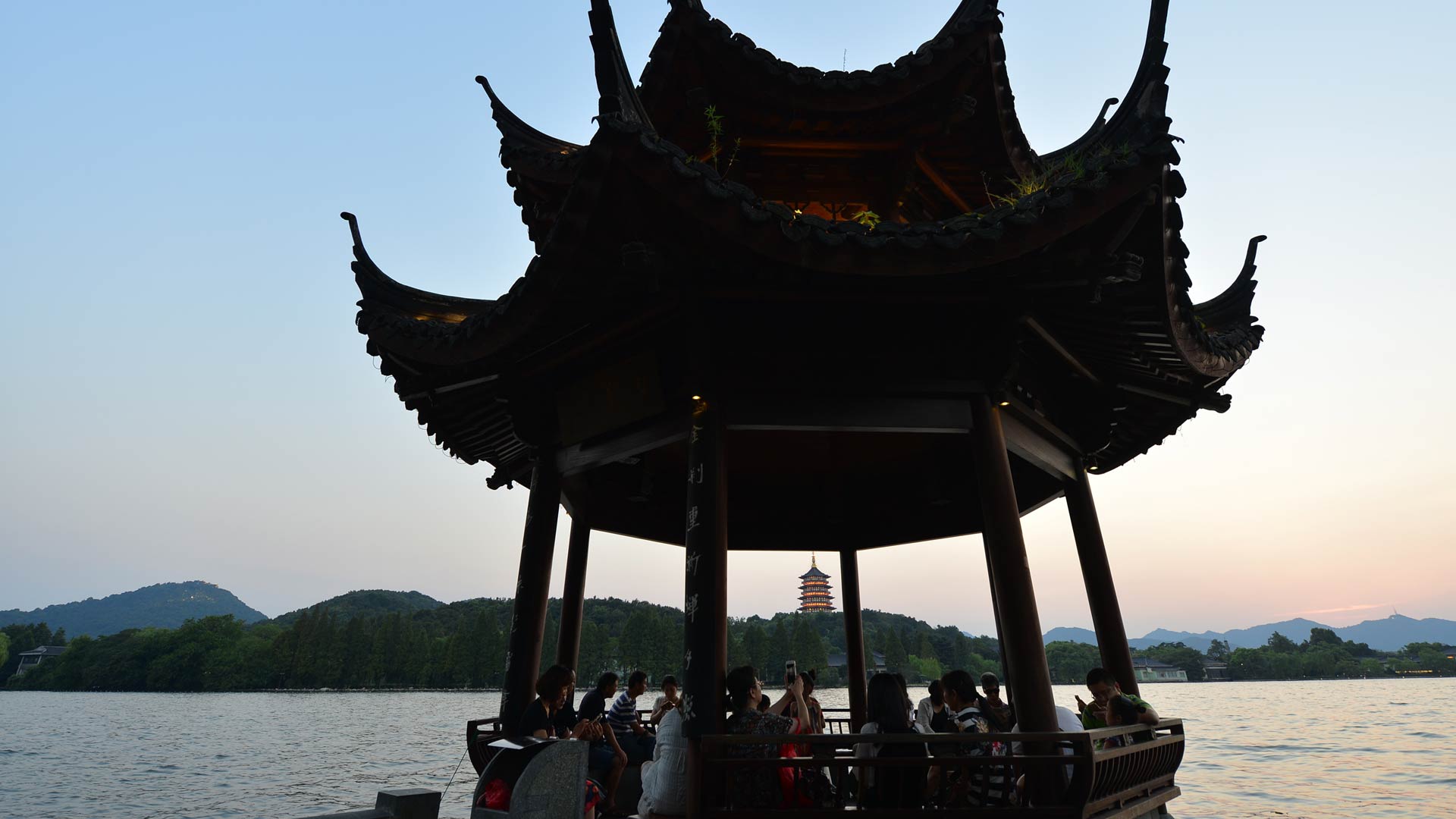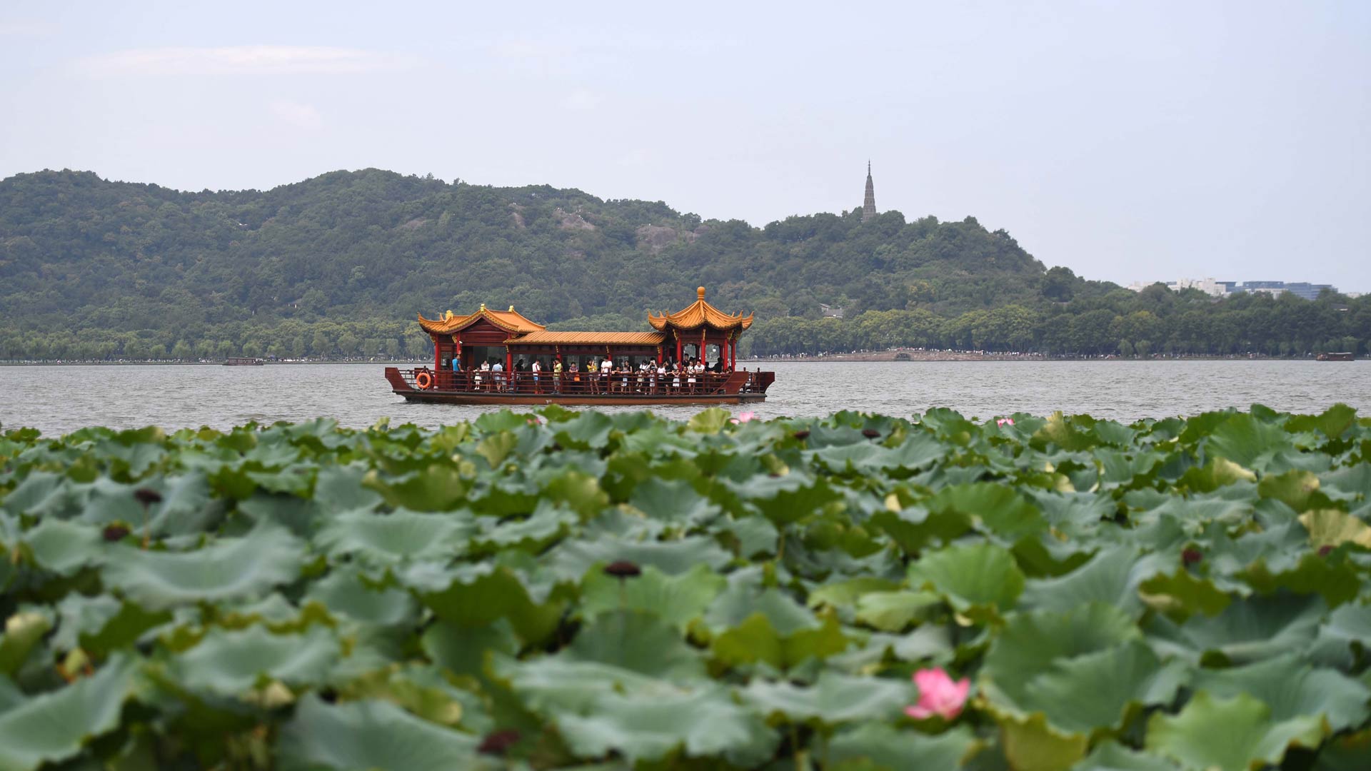 游客乘坐游船在西湖上游覽(8月27日攝)。 “三面云山一面城”,西湖的美麗自古就為眾多的作家和藝術家所稱頌。“西湖十景”被認為是“天人合一”最理想最經(jīng)典的景觀體現(xiàn)。(新華社記者 陳曄華 攝)