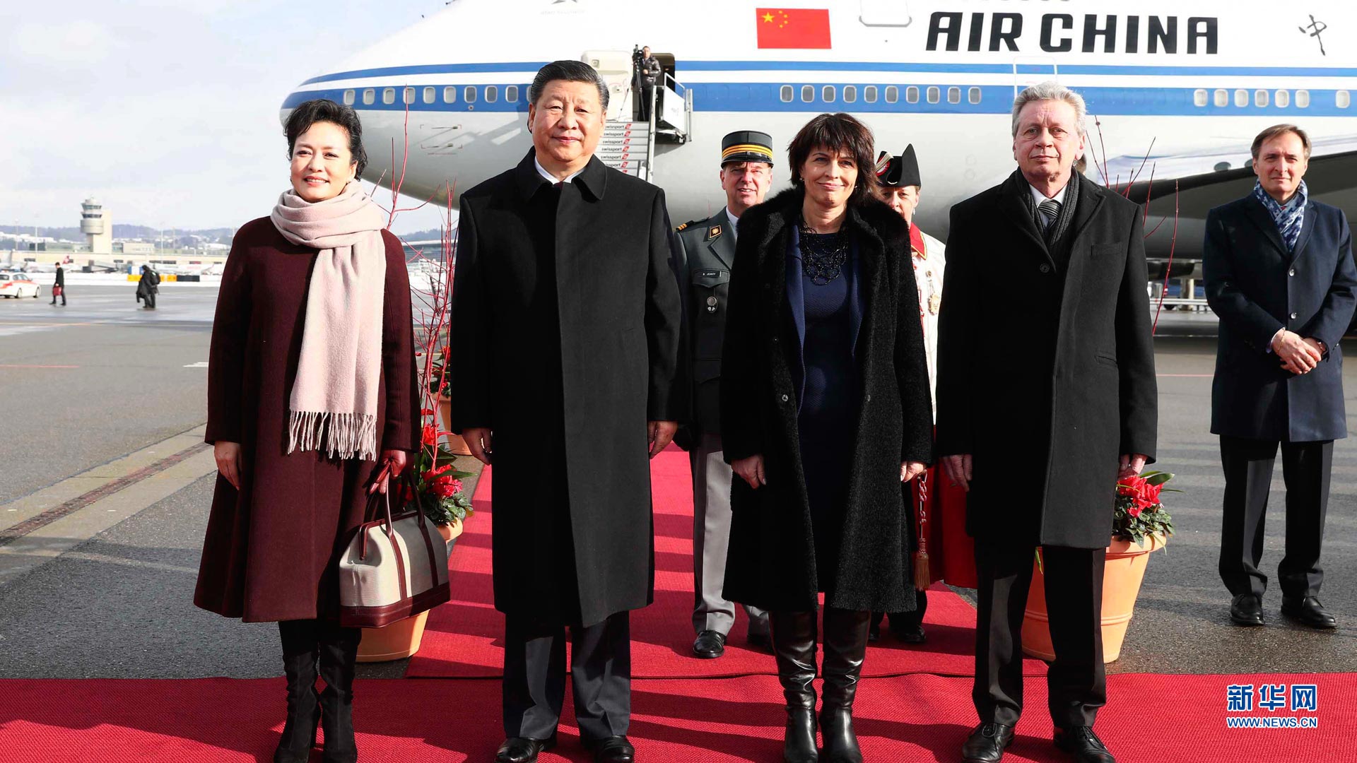 1月15日,國家主席習(xí)近平乘專機(jī)抵達(dá)蘇黎世,開始對瑞士聯(lián)邦進(jìn)行國事訪問。 這是習(xí)近平和夫人彭麗媛步出艙門。 新華社記者丁林?jǐn)z2017-01-16