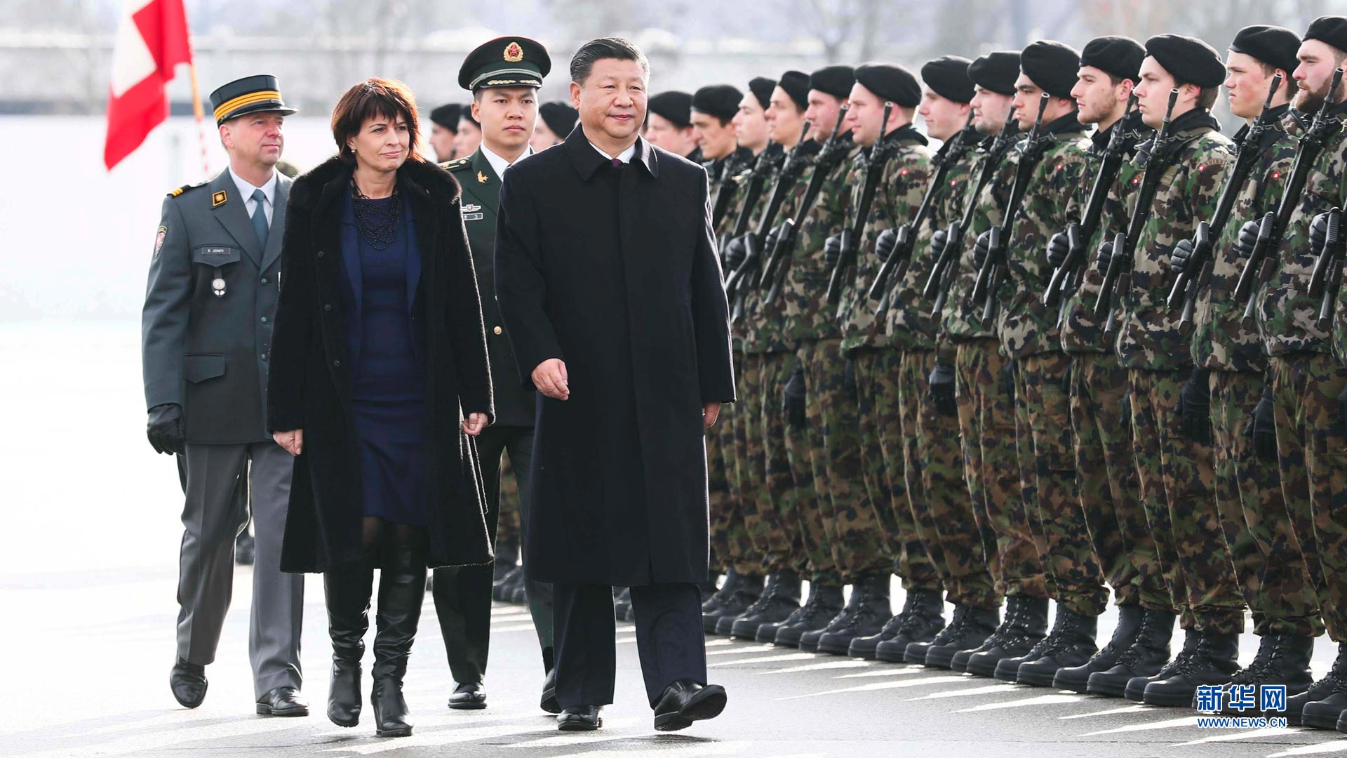 1月15日,國家主席習(xí)近平乘專機(jī)抵達(dá)蘇黎世,開始對瑞士聯(lián)邦進(jìn)行國事訪問。這是習(xí)近平在瑞士聯(lián)邦主席洛伊特哈德陪同下檢閱儀仗隊(duì)。新華社記者蘭紅光攝2017-01-16