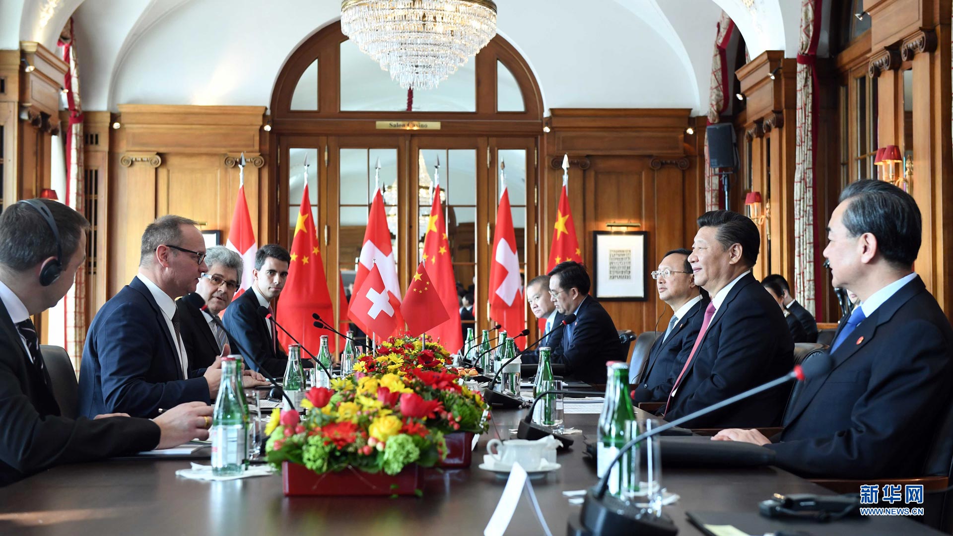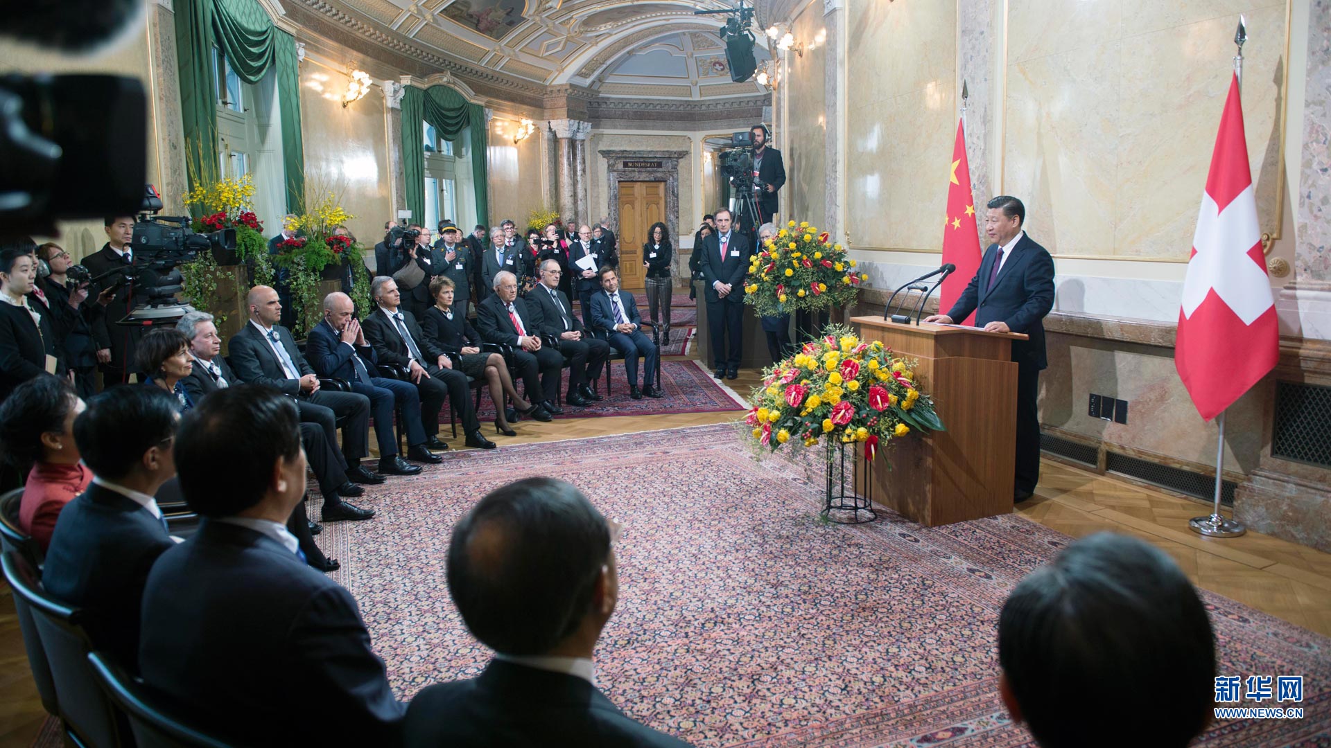 1月16日,國家主席習(xí)近平在伯爾尼同瑞士聯(lián)邦主席洛伊特哈德共同會見瑞士經(jīng)濟(jì)界代表。新華社記者 李學(xué)仁 攝2017-01-17