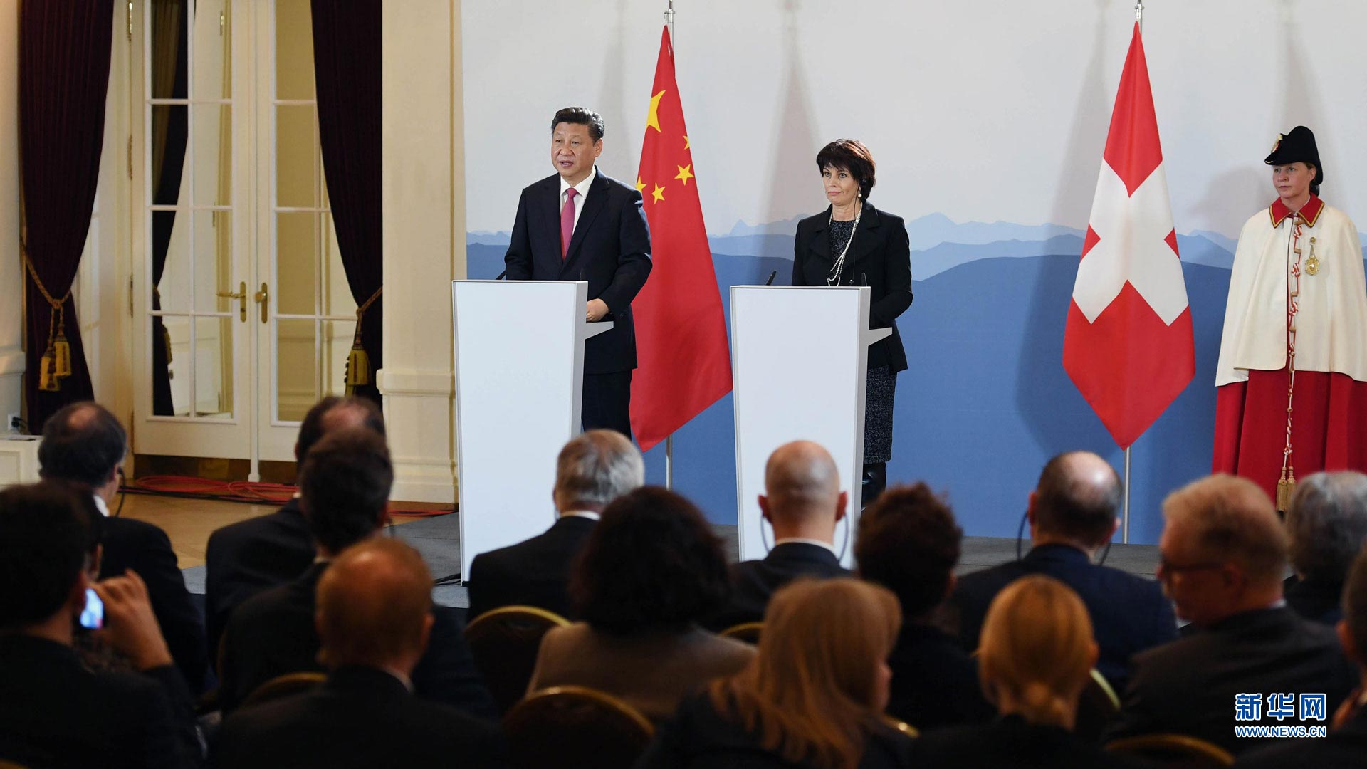 1月16日,國家主席習(xí)近平在伯爾尼同瑞士聯(lián)邦主席洛伊特哈德舉行會談。這是會談后,兩國元首共同會見記者。新華社記者 饒愛民 攝2017-01-17