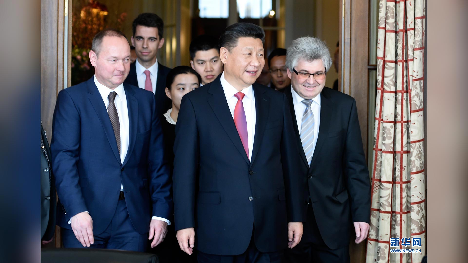 1月16日,國家主席習(xí)近平在伯爾尼會見瑞士聯(lián)邦國民院議長施塔爾和聯(lián)邦院議長比紹夫貝爾格。 新華社記者 謝環(huán)馳 攝2017-01-17