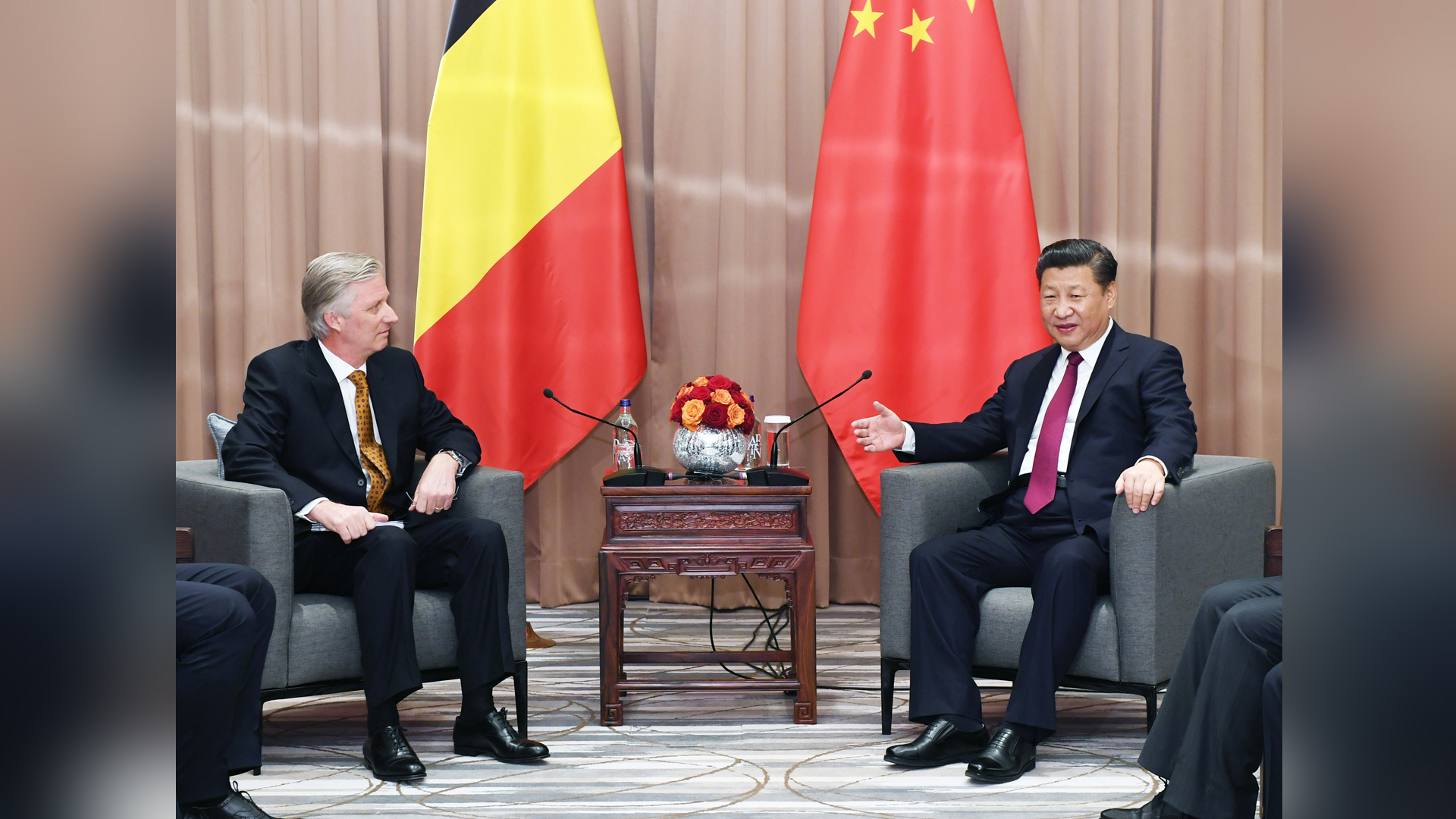 1月17日,國家主席習(xí)近平在瑞士達(dá)沃斯會見比利時(shí)國王菲利普。新華社記者 丁林 攝2017-01-18