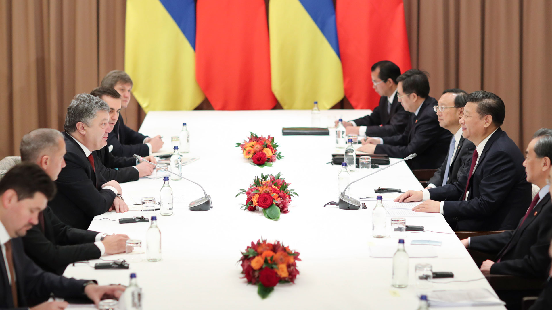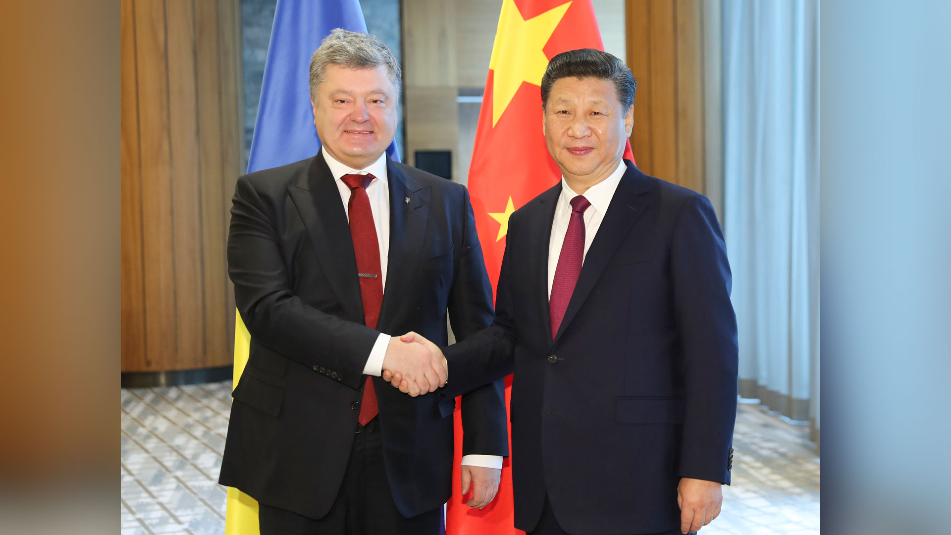 1月17日,國家主席習(xí)近平在瑞士達(dá)沃斯會見烏克蘭總統(tǒng)波羅申科。新華社記者 丁林 攝2017-01-18