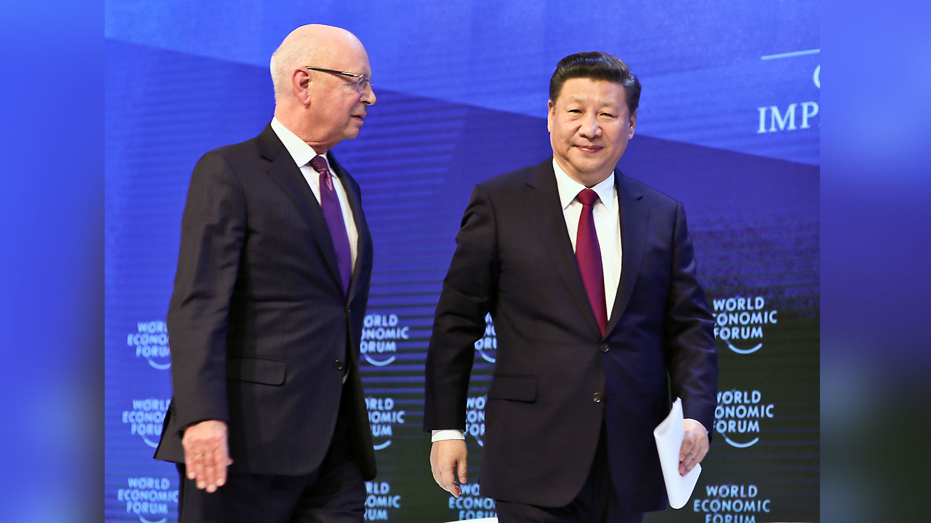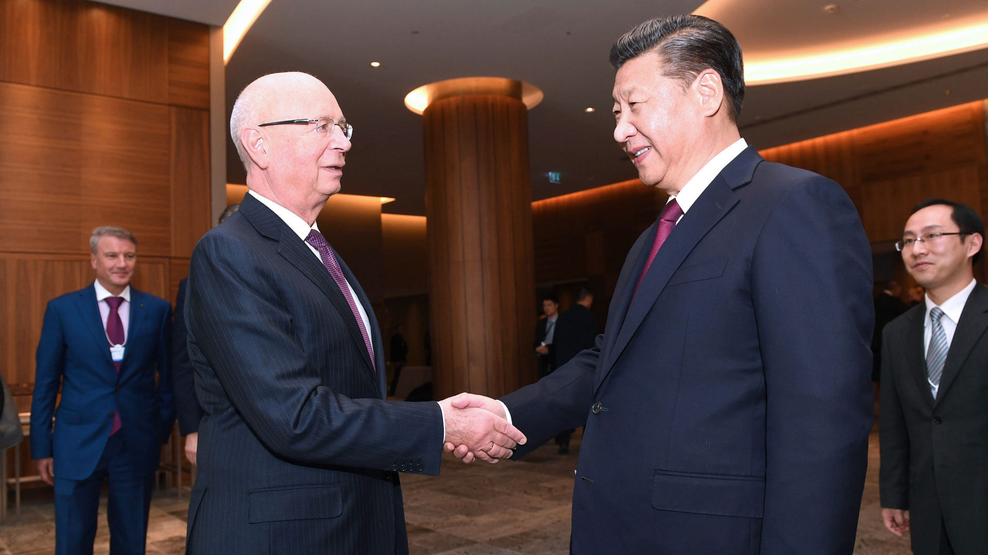 1月17日,國家主席習(xí)近平在瑞士達(dá)沃斯國際會議中心出席世界經(jīng)濟(jì)論壇2017年年會開幕式,并發(fā)表題為《共擔(dān)時(shí)代責(zé)任共促全球發(fā)展》的主旨演講。這是習(xí)近平同世界經(jīng)濟(jì)論壇創(chuàng)始人兼執(zhí)行主席施瓦布在一起。 新華社記者 蘭紅光 攝2017-01-18
