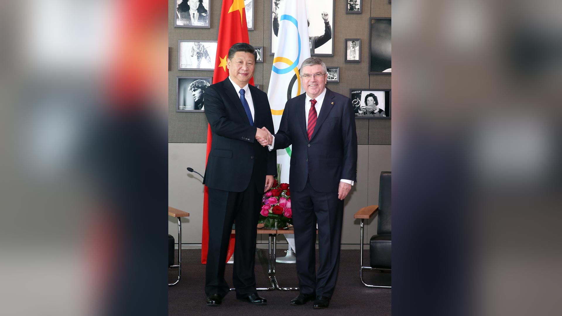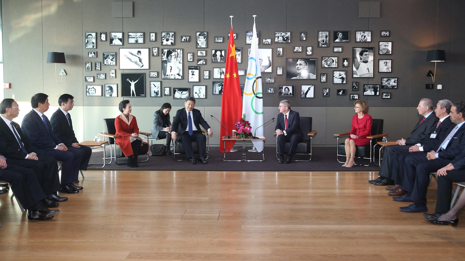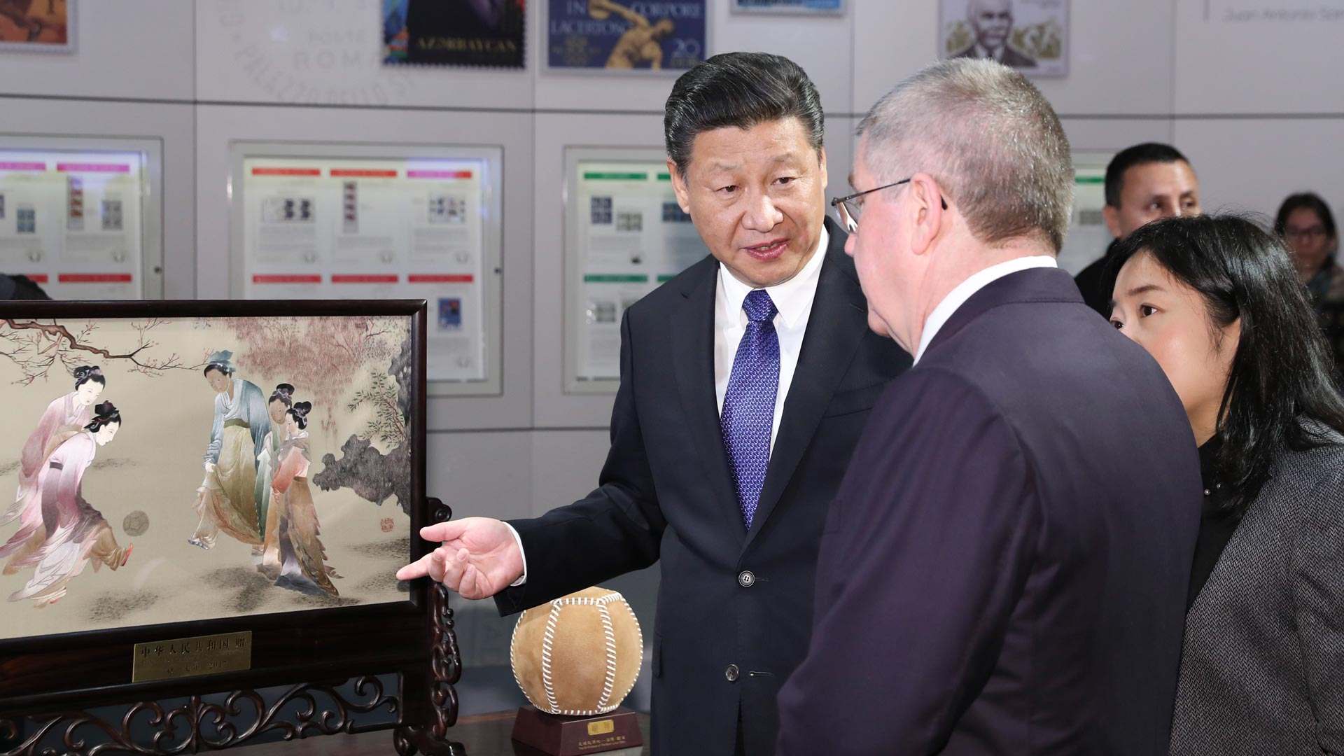 1月18日,國家主席習(xí)近平在瑞士洛桑國際奧林匹克博物館會見國際奧林匹克委員會主席巴赫。 新華社記者 姚大偉 攝2017-01-19