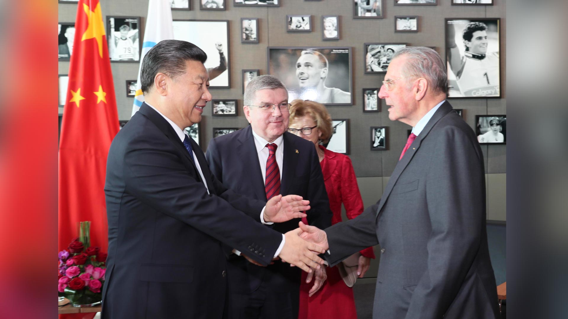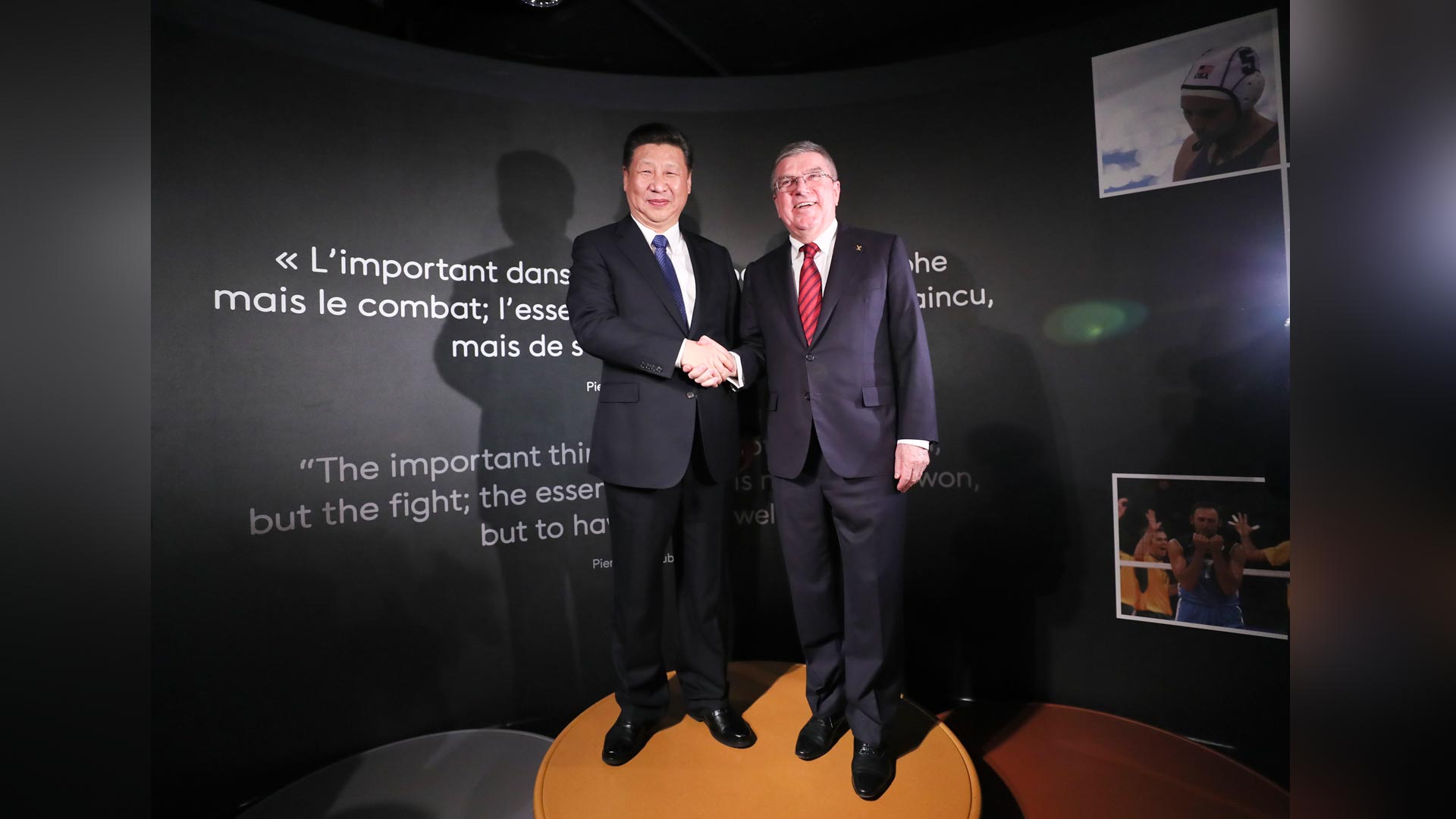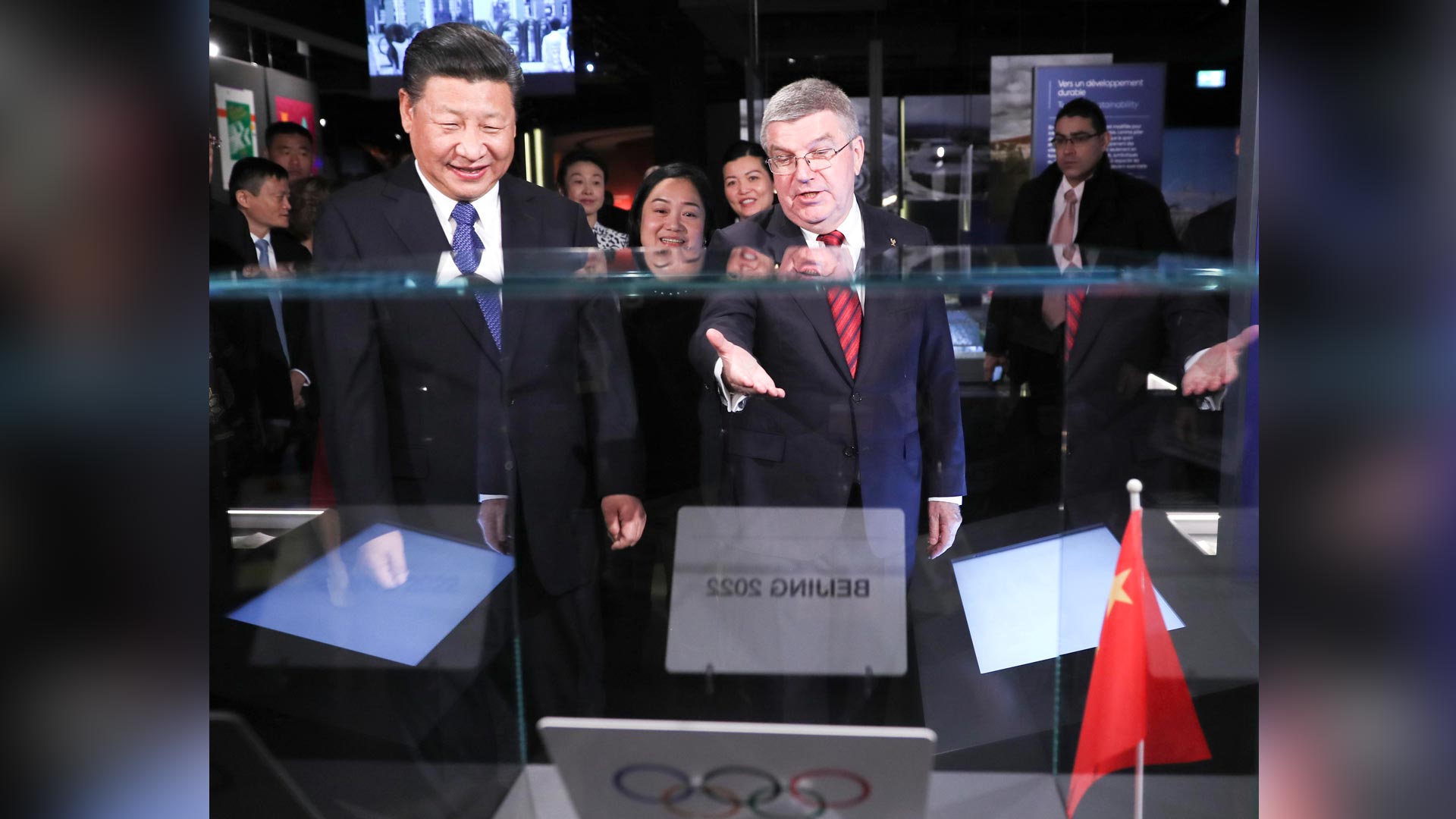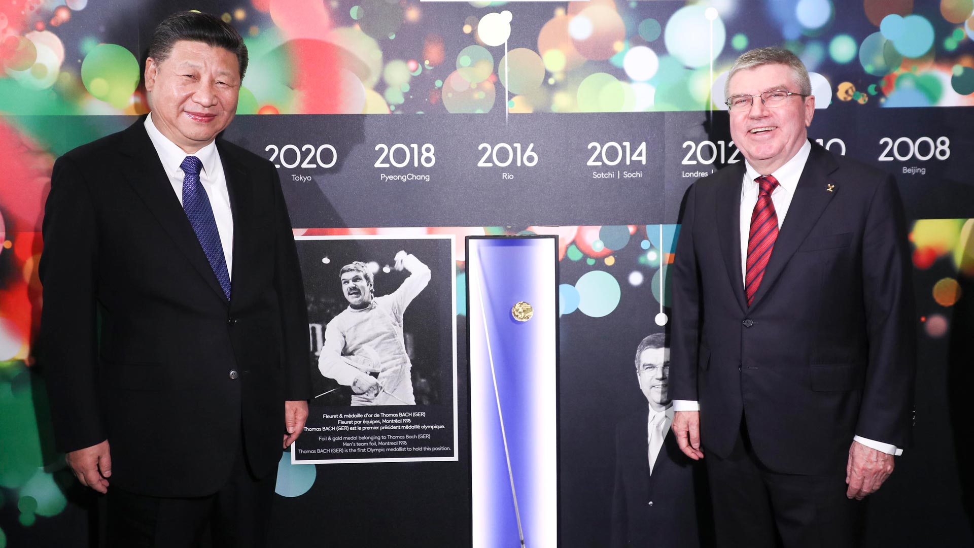 1月18日,國家主席習(xí)近平在瑞士洛桑國際奧林匹克博物館會見國際奧林匹克委員會主席巴赫。 新華社記者 姚大偉 攝2017-01-19