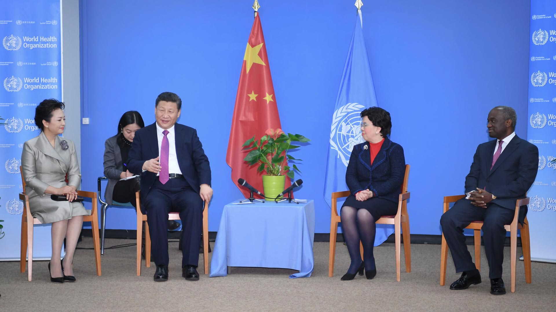 1月18日,國家主席習(xí)近平在瑞士日內(nèi)瓦訪問世界衛(wèi)生組織并會見陳馮富珍總干事。 新華社記者 李學(xué)仁 攝2017-01-19
