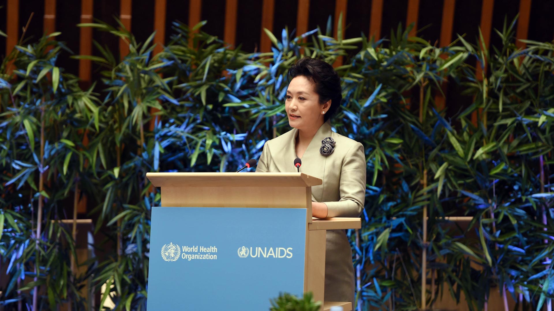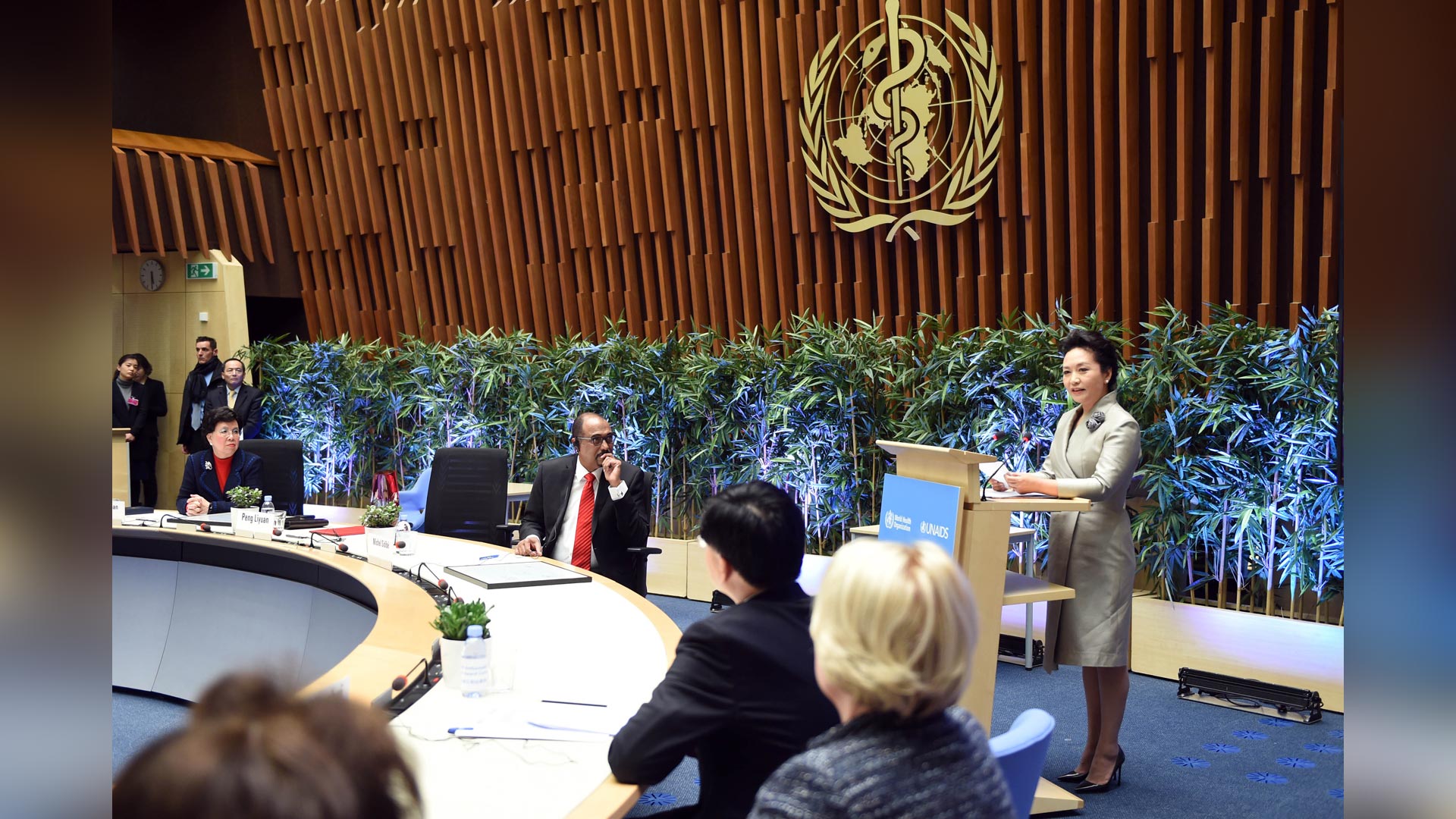 1月18日,國家主席習(xí)近平夫人、世界衛(wèi)生組織結(jié)核病和艾滋病防治親善大使彭麗媛應(yīng)世界衛(wèi)生組織總干事陳馮富珍和聯(lián)合國艾滋病規(guī)劃署執(zhí)行主任西迪貝邀請,在瑞士日內(nèi)瓦出席為她舉行的親善大使任期續(xù)延暨頒獎儀式。這是彭麗媛在儀式上致辭。新華社記者謝環(huán)馳攝2017-01-19