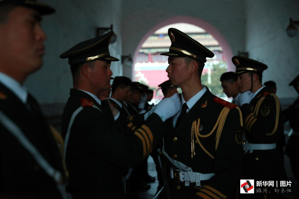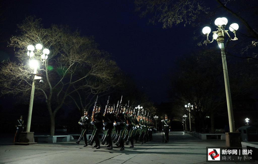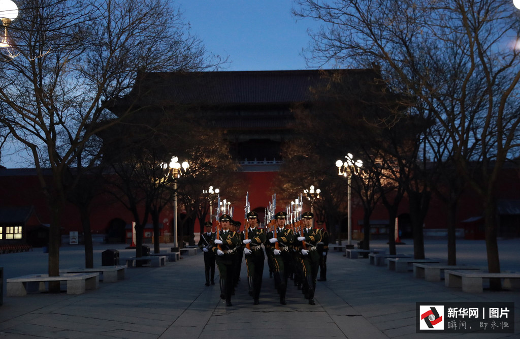 2017年3月5日,第十二屆全國人民代表大會第五次會議在人民大會堂開幕。凌晨4點的長安街,夜色還未褪去,位于故宮午門前一側(cè)的一座武警營區(qū)內(nèi),卻已是燈火通明。一群武警戰(zhàn)士穿起禮兵服、握緊鋼槍開始訓(xùn)練。晨曦微露,從金水橋到國旗桿下,138步、2分07秒、365天,無論雨雪風(fēng)霜、嚴(yán)寒酷暑,他們都守護著五星紅旗冉冉升起。這支部隊就是武警北京總隊天安門支隊國旗護衛(wèi)隊。
