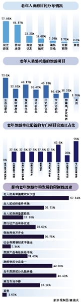 針對老年旅游市場目前存在的不足,報告提出,應系統(tǒng)開發(fā)老年旅游市場,培育和推廣老年旅游服務(wù)優(yōu)質(zhì)產(chǎn)品,加強對老年旅游接待工作的規(guī)范和管理,完善和優(yōu)化老年旅游服務(wù)標準,提升老年旅游服務(wù)質(zhì)量和服務(wù)接待水平。