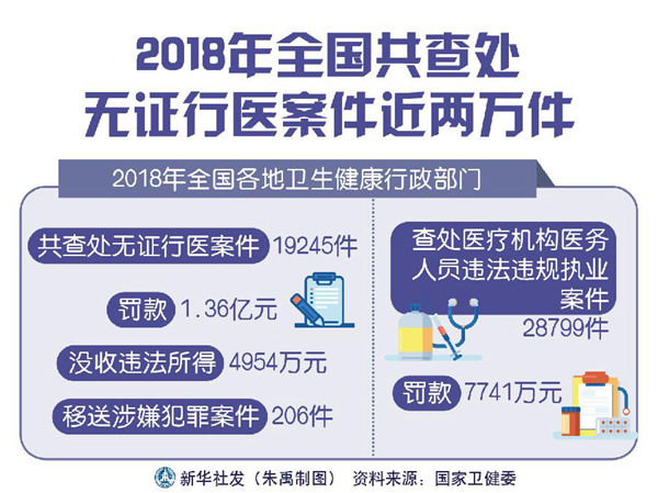 2018年全國共查處無證行醫(yī)案件近兩萬件