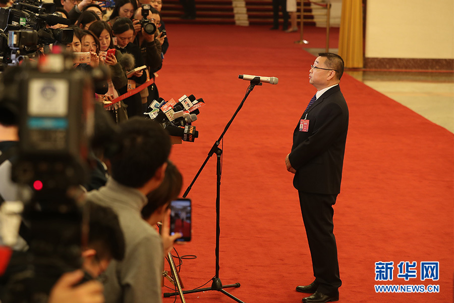 3月3日下午,全國政協(xié)十三屆二次會議開幕會結(jié)束后,2019年全國兩會“部長通道”在人民大會堂正式開啟,部長們在這里直面熱點(diǎn),回應(yīng)關(guān)切。圖為國家醫(yī)療保障局局長胡靜林接受采訪。新華網(wǎng)/中國政府網(wǎng) 陳杰 攝