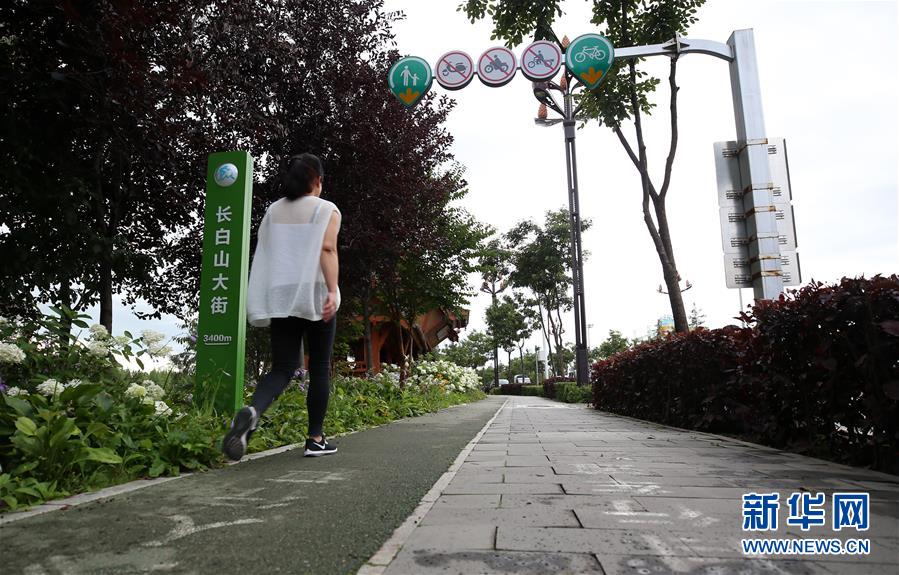 9月1日,在長(zhǎng)白山腳下的二道白河鎮(zhèn),市民在城市“慢行綠道”上步行。? 新華社記者 雒圓 攝