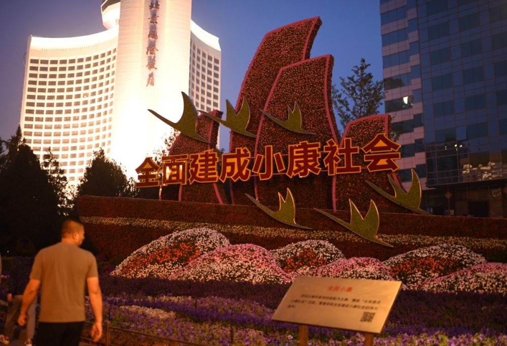 早晨5點(diǎn)半,北京日?qǐng)?bào)客戶端記者從東長(zhǎng)安街建國門的第1處國慶花壇《全面小康》出發(fā),經(jīng)東單、西單兩個(gè)花壇布置區(qū),終點(diǎn)到達(dá)位于西長(zhǎng)安街的復(fù)興門第10處花壇《復(fù)興偉業(yè)》。